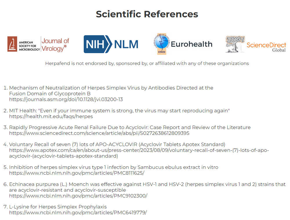 Herpafend comes with a 100% money back guarantee - 60 full days from your original purchase. If you're not totally and completely satisfied with our product or your results within the first 60 days simply let us know by calling our toll-free number or dropping us an email and we'll gladly give you a full refund within 48 hours of the product being returned. That's right - simply return the product, even your empty bottles, anytime within 60 days of your purchase and you'll receive a full, no-questions-asked refund (minus shipping and handling fees).
